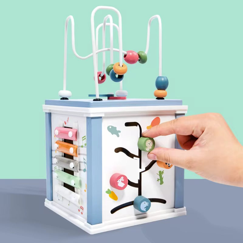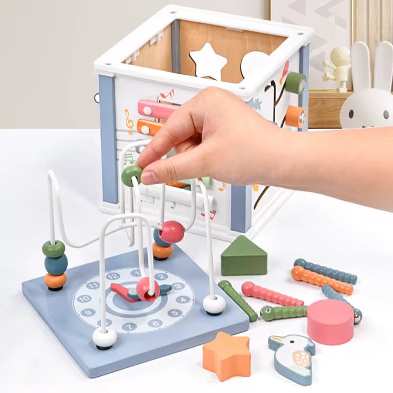 Let your little one explore endless fun and learning with this multifunctional wooden activity cube! Designed for children aged 3 years and up, it combines creativity, education, and imagination all in one toy.