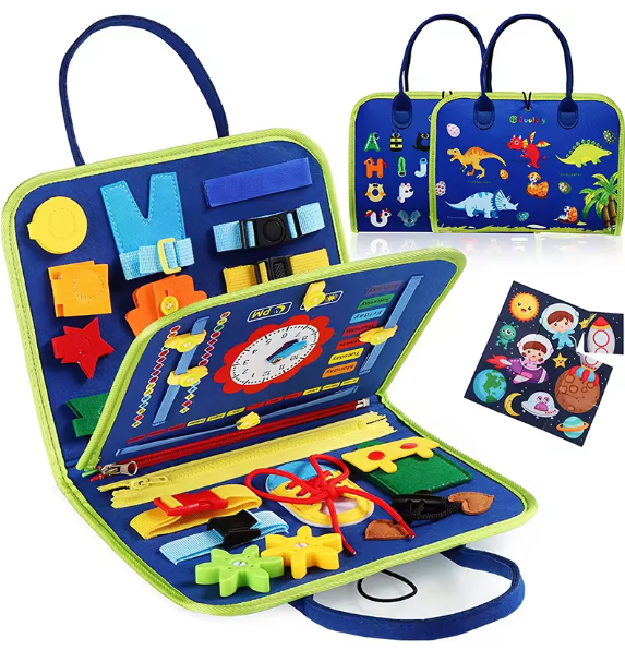 This busy book educational toy is a multi-functional learning tool designed for toddlers and preschool-aged children. It serves as an interactive, sensory-based activity board that enhances cognitive and motor skills while keeping kids engaged in a fun and hands-on way.