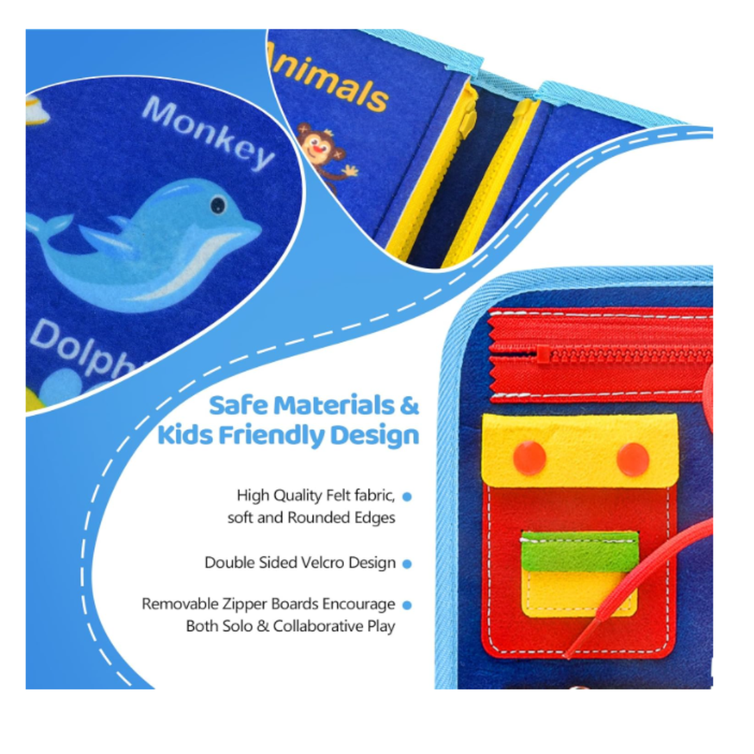 This busy book is an excellent gift for toddlers and preschoolers, fostering early education in a fun, engaging, and interactive way!