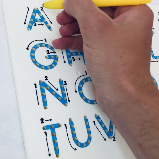 • Trace the lines with the magnetic stylus and follow the arrows to learn the fundamentals of alphabet writing.